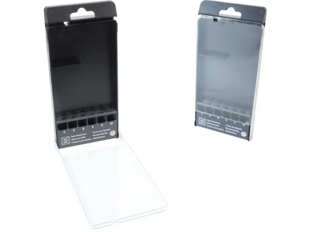 Praktická škatuľa na skladovanie a prepravu vrtákov. Obsahuje 6 otvorov pre často používané veľkosti. Vďaka priehľadnému krytu vidíte, či je súprava kompletná. Na hornej strane sa nachádza pútko na zavesenie boxu na stenu.