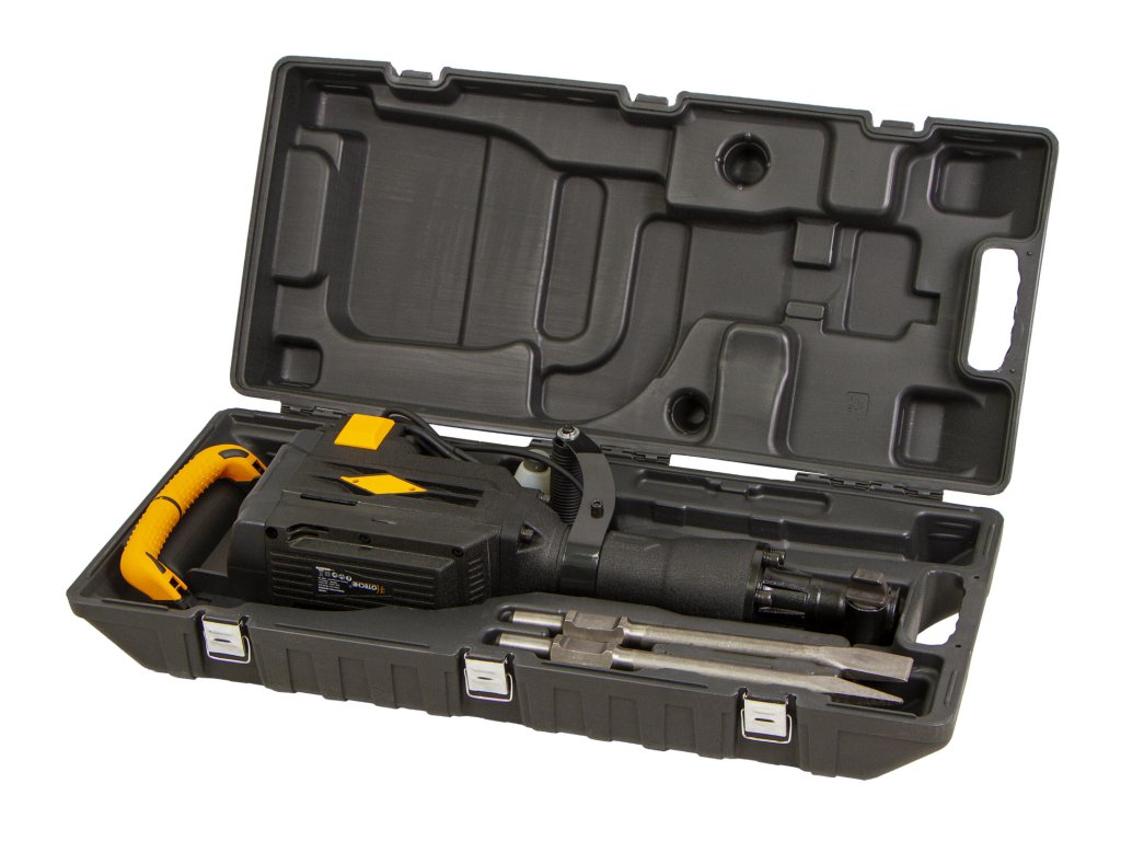 Búracie – demolačné kladivo (zbíjačka či „kango“), sila úderu 46 J, príkon motora 1800 W, v sade so sekáčmi a príslušenstvom v kufri – Hoteche