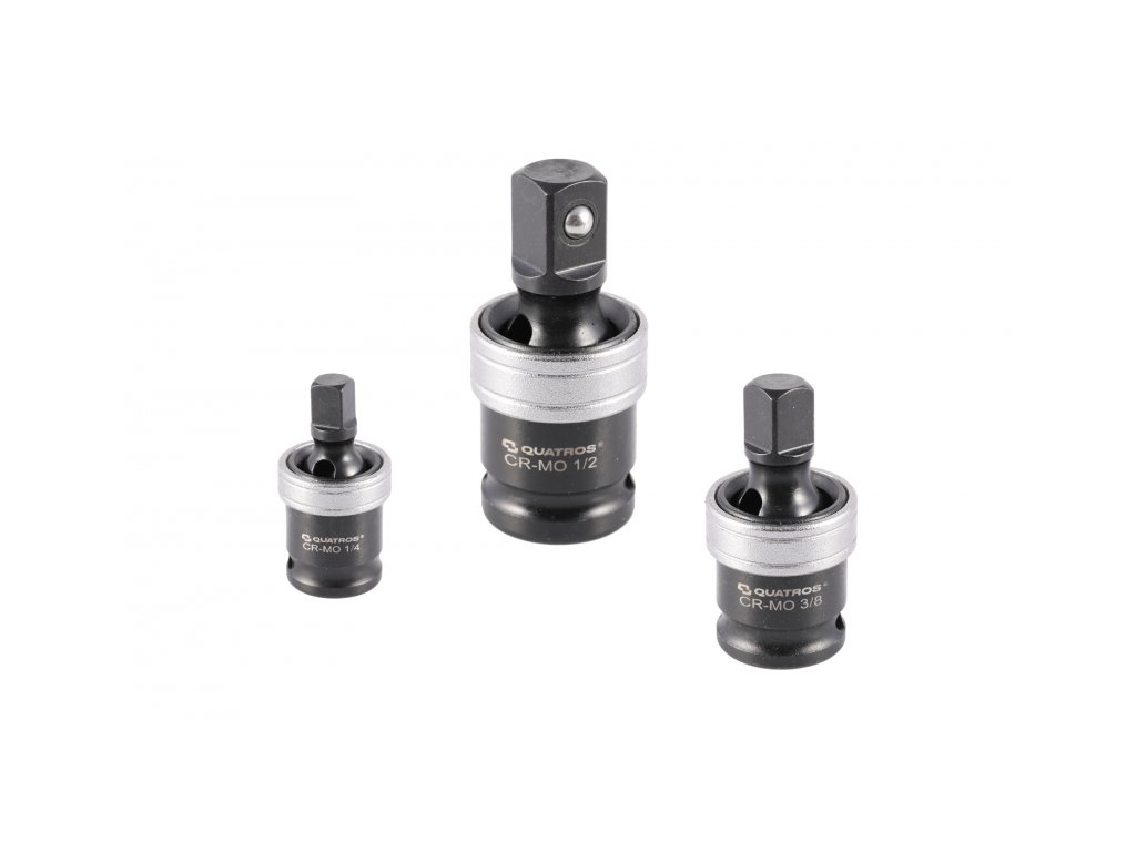 Kĺbové nadstavce, dierovač, veľkosti 1/4", 3/8", 1/2", sada 3 kusov - QUATROS QS50700