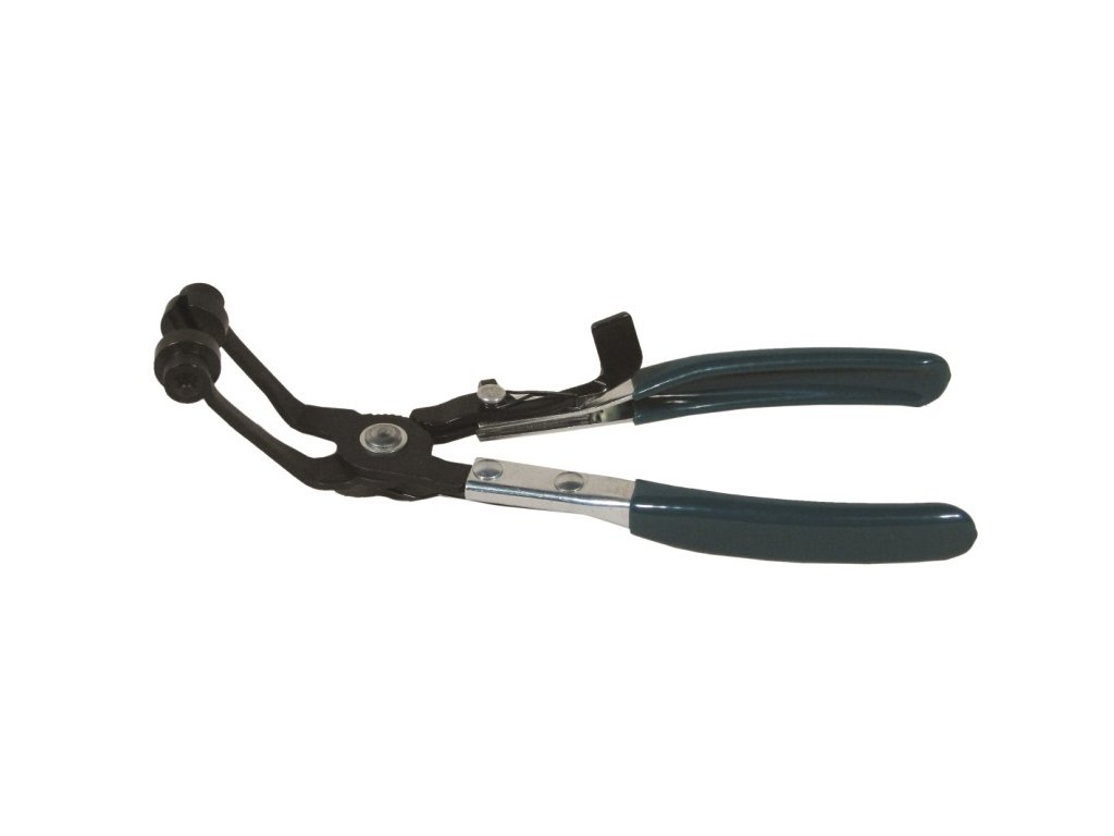 Kliešte pre montáž / demontáž jednoduchých, samosvorných hadicových spôn s mechanizmom zaistenia v zovretom stave, nezošmykujú zo spony. Zakrivené čeľuste uľahčujú montáž v úzkych priestoroch. Otočné konca čeľustí uľahčujú uchopenie spony v akejkoľvek polohe. Jedna strana čeľustí má tvar "V".