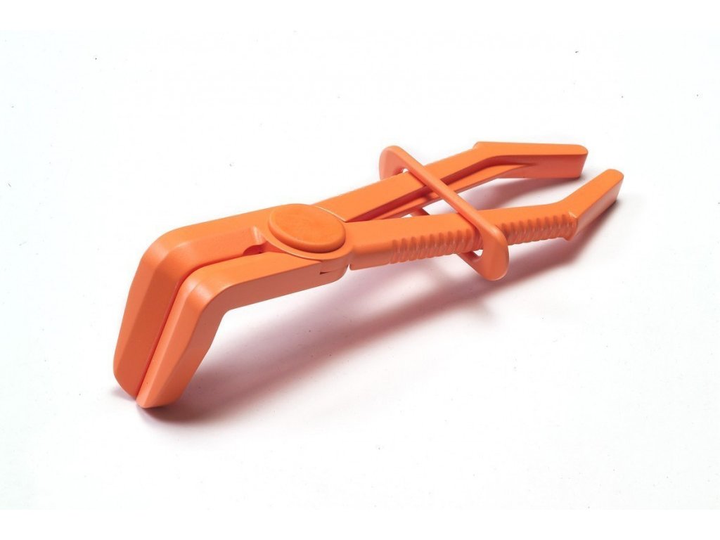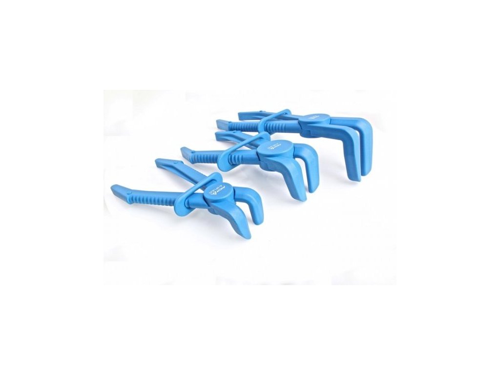 Veľmi jednoduché použitie: po nasunutí na hadicu a zovretí sa čeľuste zaistia pomocou spony. Čeľuste sú stupené, vďaka čomu nehrozí poškodenie (napr. narezanie) hadíc.