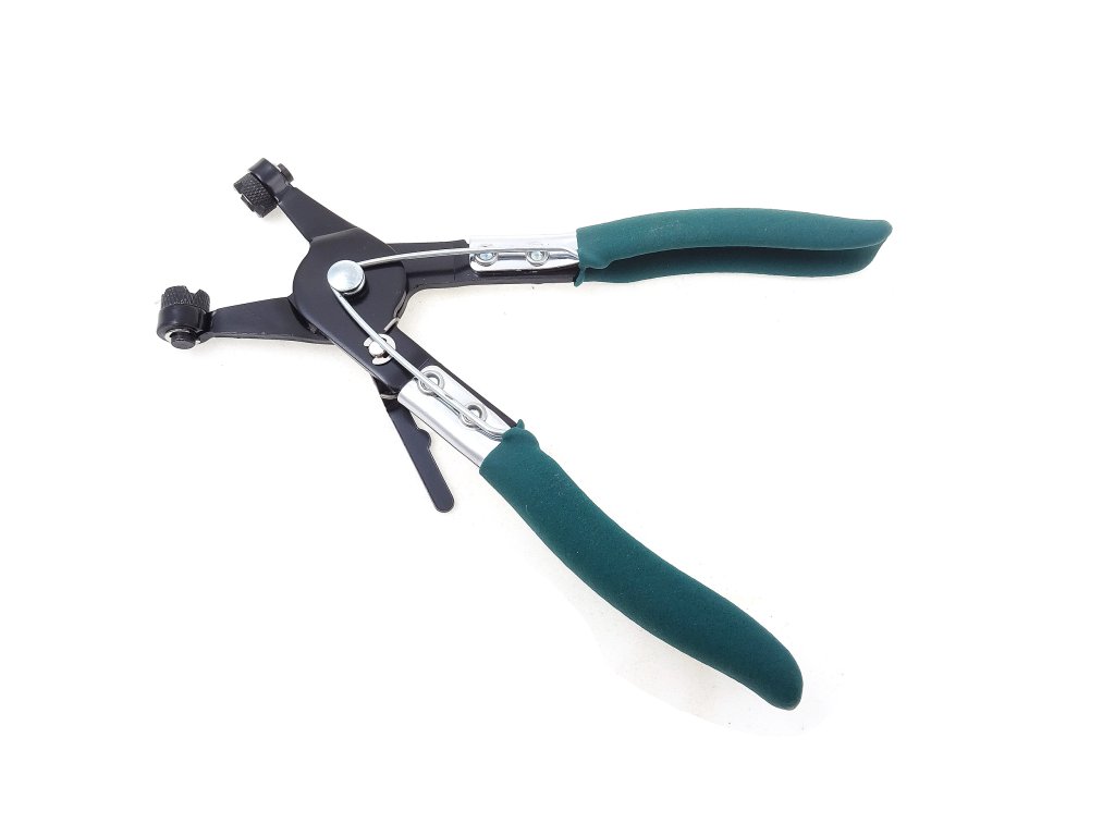 Kliešte pre montáž / demontáž samosvorných hadicových spôn s mechanizmom zaistenia v zovretom stave, nezošmykujú zo spony. Uľahčujú prácu aj na horšie prístupných miestach. Čeľuste majú drážky tvaru "+" a otočné konce pre pohodlné uchopenie spôn v akejkoľvek polohe.