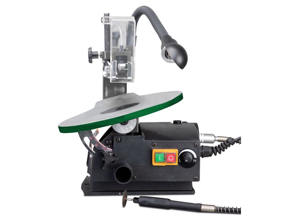 Lupenková píla s plynulou reguláciou chodu pílového plátku v rozsahu 1 650 – 4 800 kmitov za minútu. Ideálne pre jemnú mechanickú prácu, výrobu hračiek, modelárov, atď.
