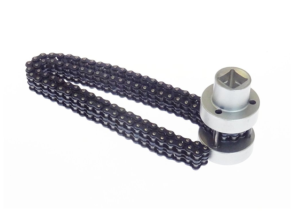 Pevný kľúč na olejové filtre. Dvojitý reťaz (tzv. Duplex) je proti klasickej variante pevnejšie a možno naň vyvinú väčšiu silu.