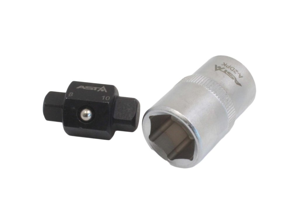 Voliteľný kľúč pre skrutky výstupu olejovej vane so štvorcovým vnútorným profilom 8 a 10 mm, vrátane nástrčky na obsluhu - ASTA A-2DPK