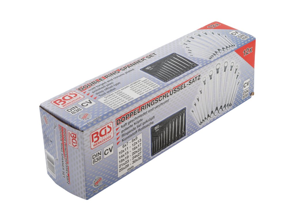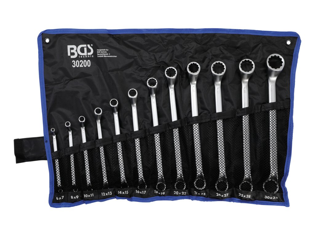 Súprava 12 dielna kľúčov očkových vyhnutých "trháky" 6-32 mm kované za studena (vďaka tomu je dosiahnutá vyššia pevnosť) - BGS technic