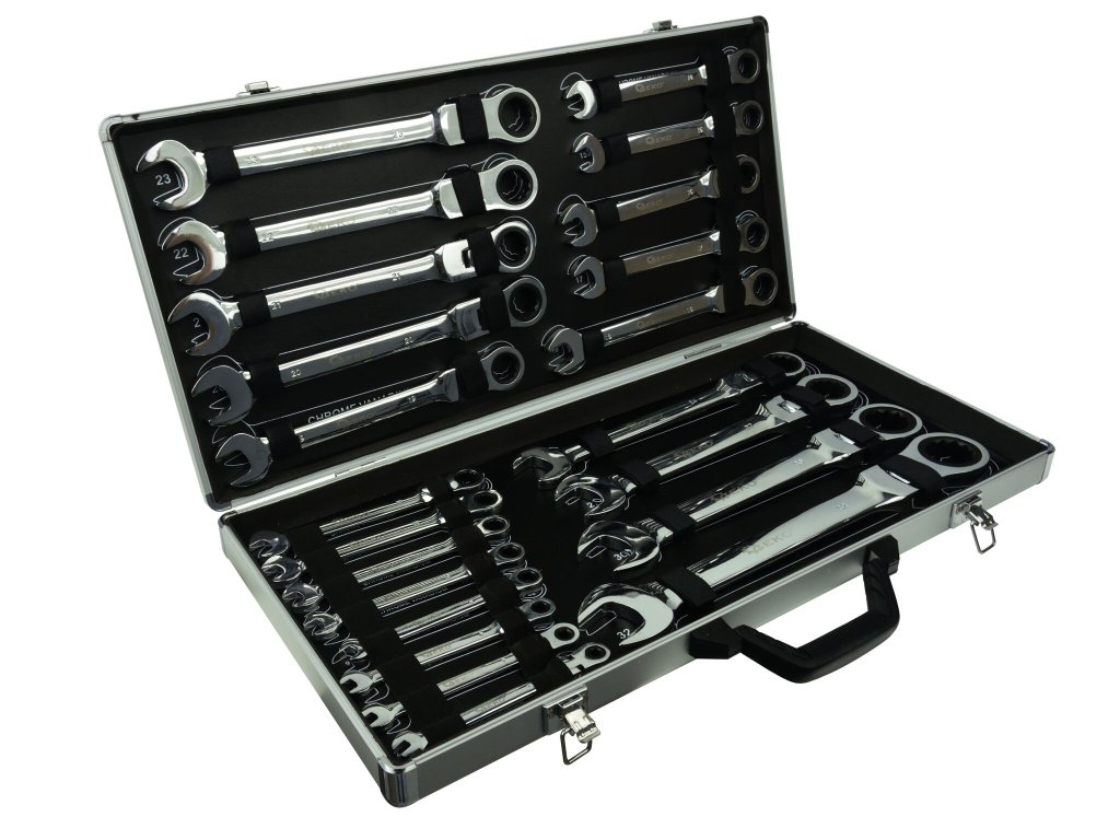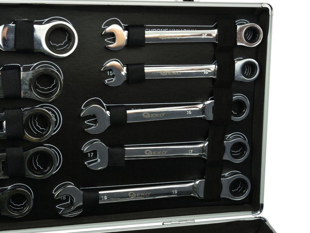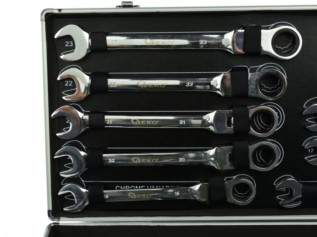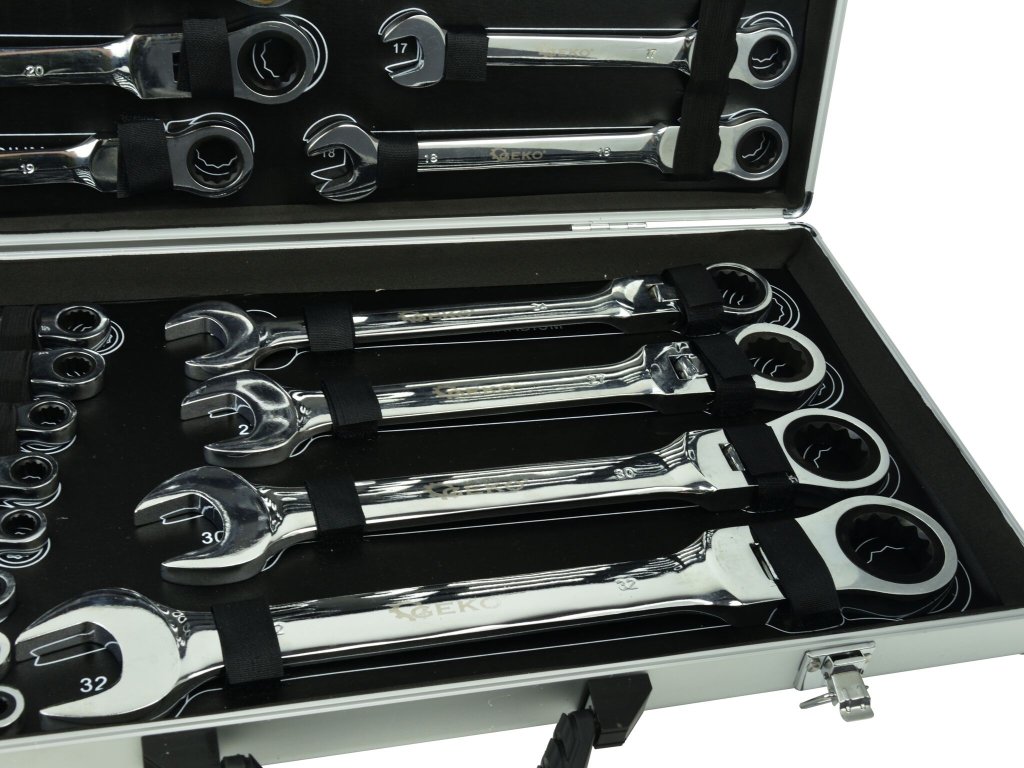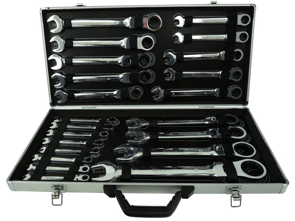 Očkoploché kĺbové kľúče s račňou, 6 - 32 mm, sada 22 kusov, v kufríku