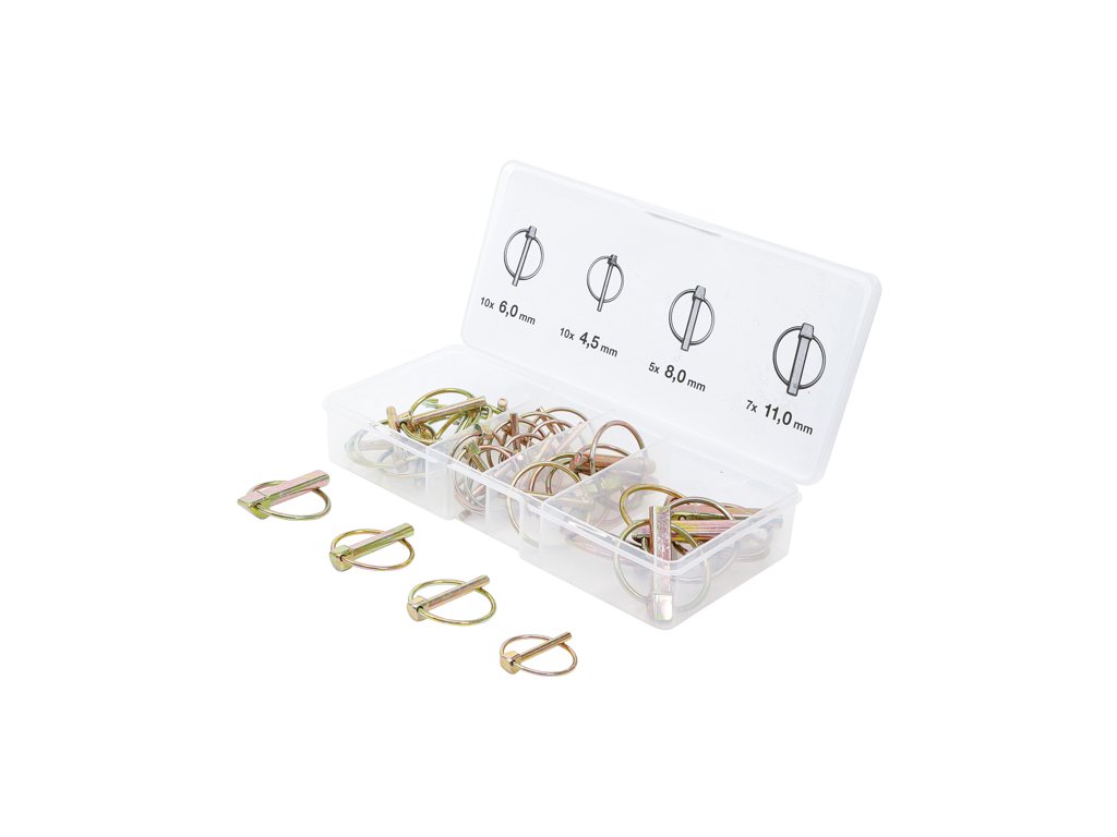 Krúžkové závlačky s priemerom kolíka od 4,5 do 11.0 mm, galvanizované, sada 32 kusov v krabičke - BGS do it yourself 88195