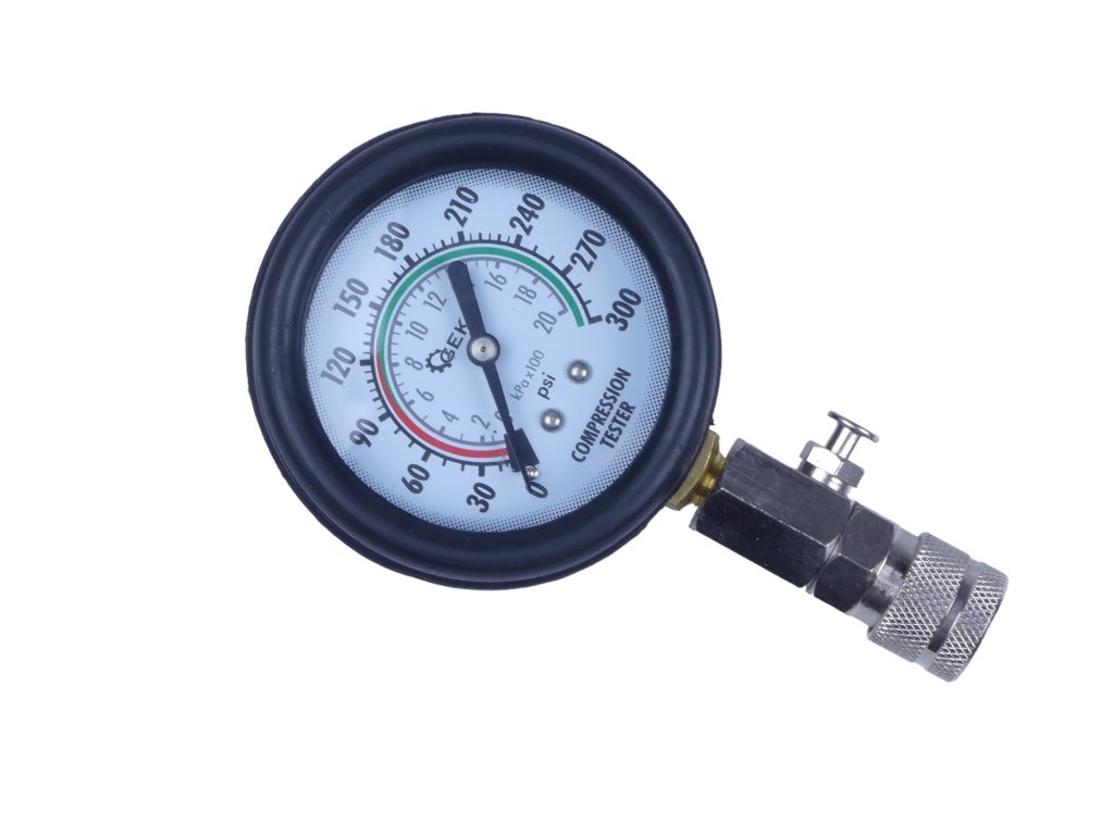 Kompresiometr pre meranie tlaku vo valcoch benzínových motorov u osobných a ľahkých úžitkových automobilov.