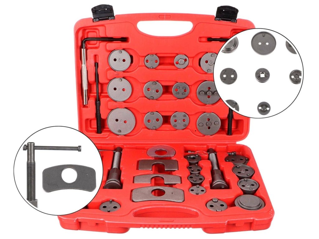 Univerzálna súprava kompresora brzdových piestov je vhodná na stláčanie a/alebo reverzáciu piestov kotúčových bŕzd.