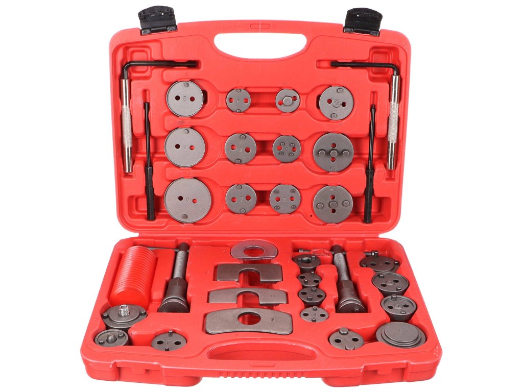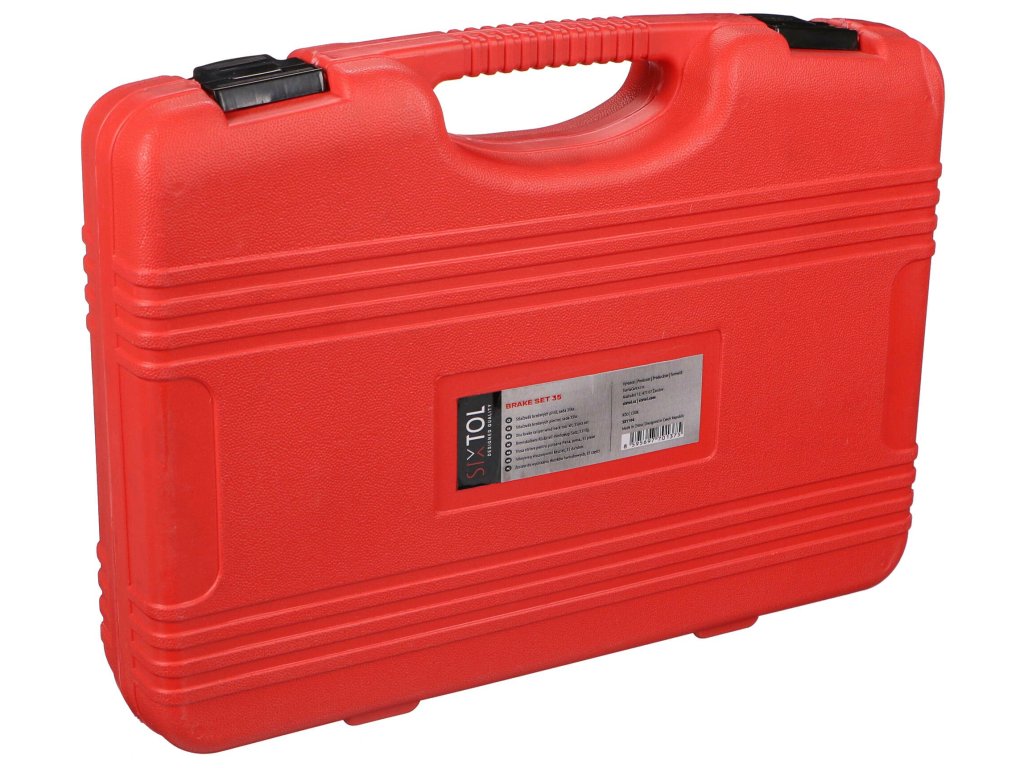 Kompresor brzdového piesta, ľavý a pravý kohútik s magnetom a adaptérmi, sada 35 ks, v plastovom kufríku - SIXTOL SX1104.