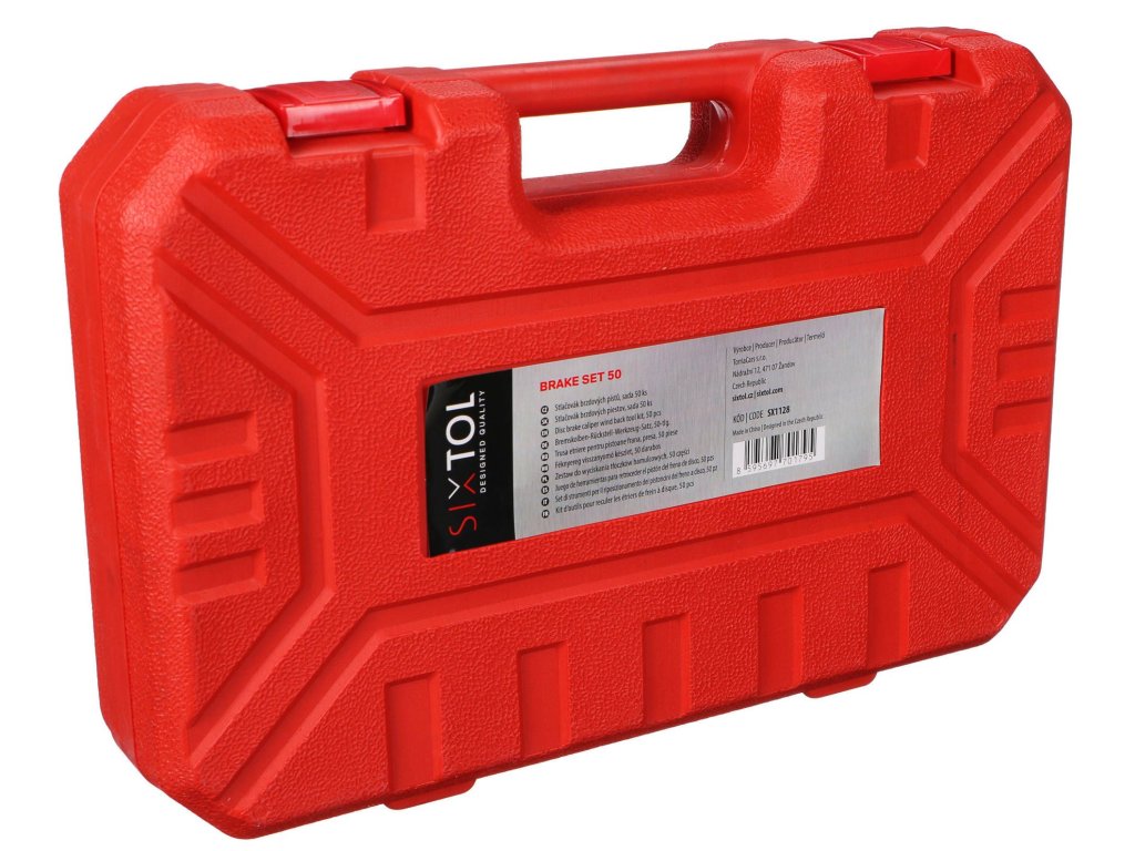 Kompresor brzdového piesta, ľavý a pravý kohútik s magnetom a adaptérmi, sada 50 ks, v plastovom kufríku - SIXTOL SX1128.