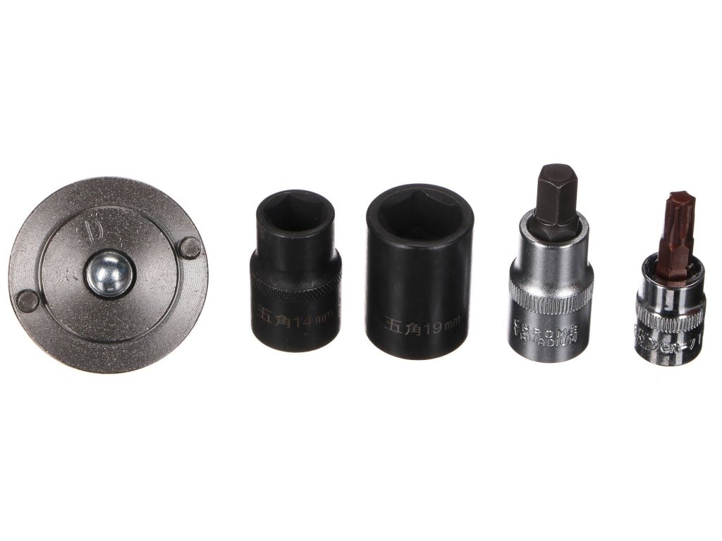 Súprava obsahuje pravý a ľavý kompresný kohútik s magnetom, štyri dorazmi, dva imbusové kľúče, dierovače, nádobku na mazivo a rôzne adaptéry.