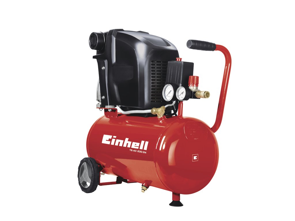 Dostatočné zásoby stlačeného vzduchu sú uchovávané v 24 litrovom vzdušníku. Pracovný tlak kompresora možno pohodlne odčítať na tlakomeri vybaveným rýchlospojkou. Manometer je k dispozícii pre kontrolu tlaku vo vzdušníku. Praktický skrutka pre vypúšťanie kondenzátu umožňuje užívateľsky prívetivú údržbu.