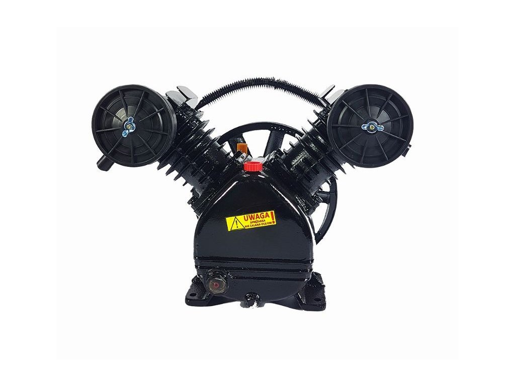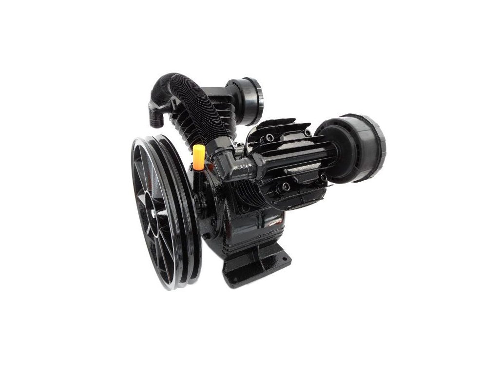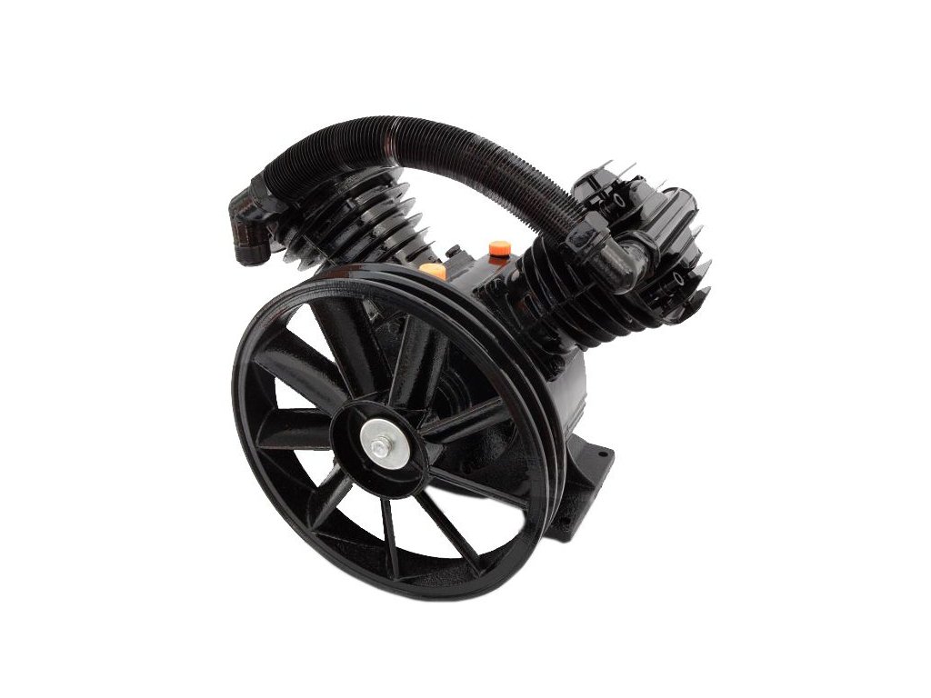 Vzduchom chladená, remenicou poháňaná, olejovým sprejom mazaná jednotka na výrobu stlačeného vzduchu.