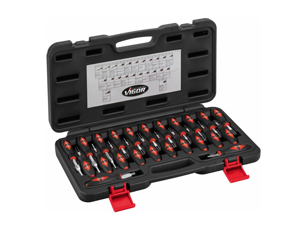 Prípravky na rozpojenie konektorov „štekrov“ v elektroinštaláciách vozidiel, súprava 23 kusov v plastovom kufri – VIGOR V4451