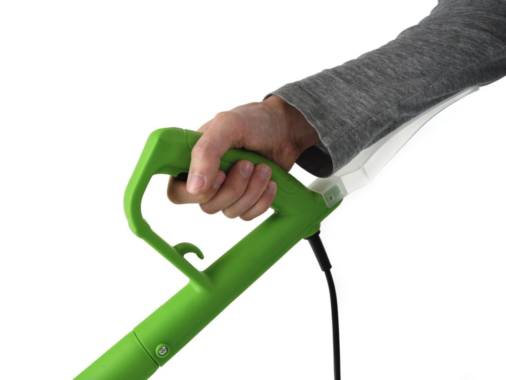 Chod sa zapína veľkým tlačidlom priamo v rukoväti. Kosačka je vybavená nielen štandardným krytom struny, ale aj ochranou ruky, ktorá nástroj drží. Nemusíte mať teda strach z odletujúcich kúskov trávy, kamienkov, vetvičiek pod., Ktoré by vašu ruku mohli poraniť.