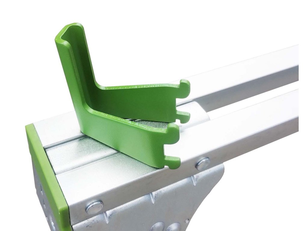 Pomocou dvoch hranolov (nie sú súčasťou balenia) možno spojiť dve kozy a vytvoriť tak pracovný stôl.