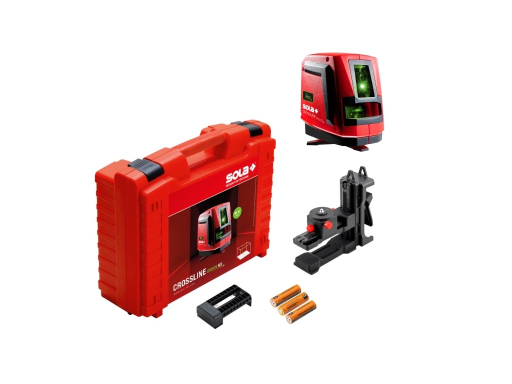Krosový laser, samonivelačný, dosah 25 m, tolerancia +/- 0,2 mm/m, v plastovom kufríku - SOLA CROSSLINE GREEN NX - 71013801.