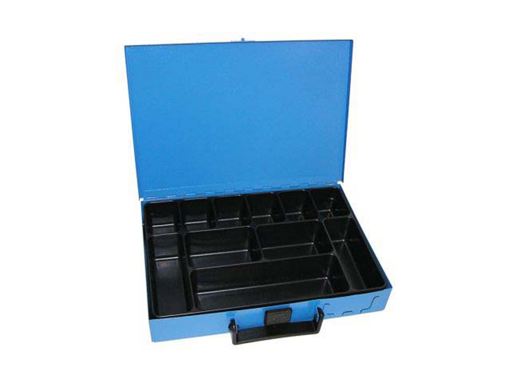 Praktický kufor na uskladnenie a transport drobnejšieho autoservisného a dielenského vybavenia (skrutky, matice, elektrické konektory, bity a ďalšie drobné náradie, hadičky a rúrky a pod. Obsahuje jednu dlhú, dve väčšie, dve stredné a šesť malých priehradiek. Vnútorný plastový zakladač je možné vybrať.