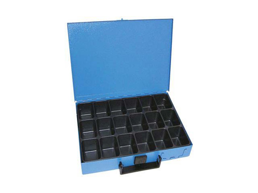 Kufor na spotrebný materiál 330x230x50 mm, 18 priehradok, plechový