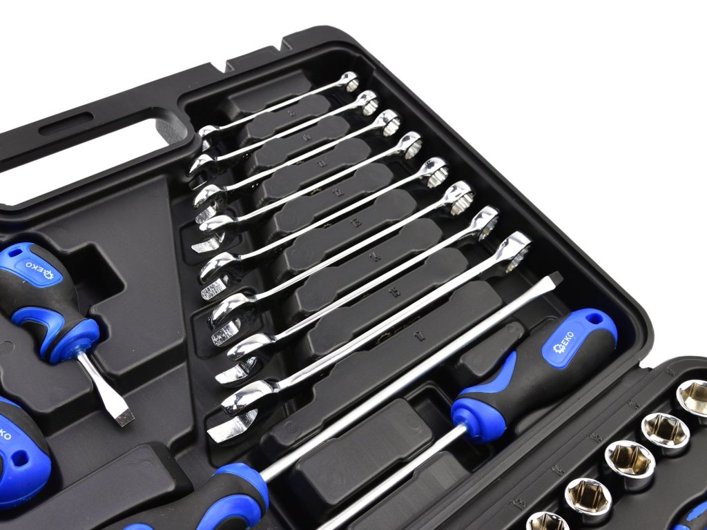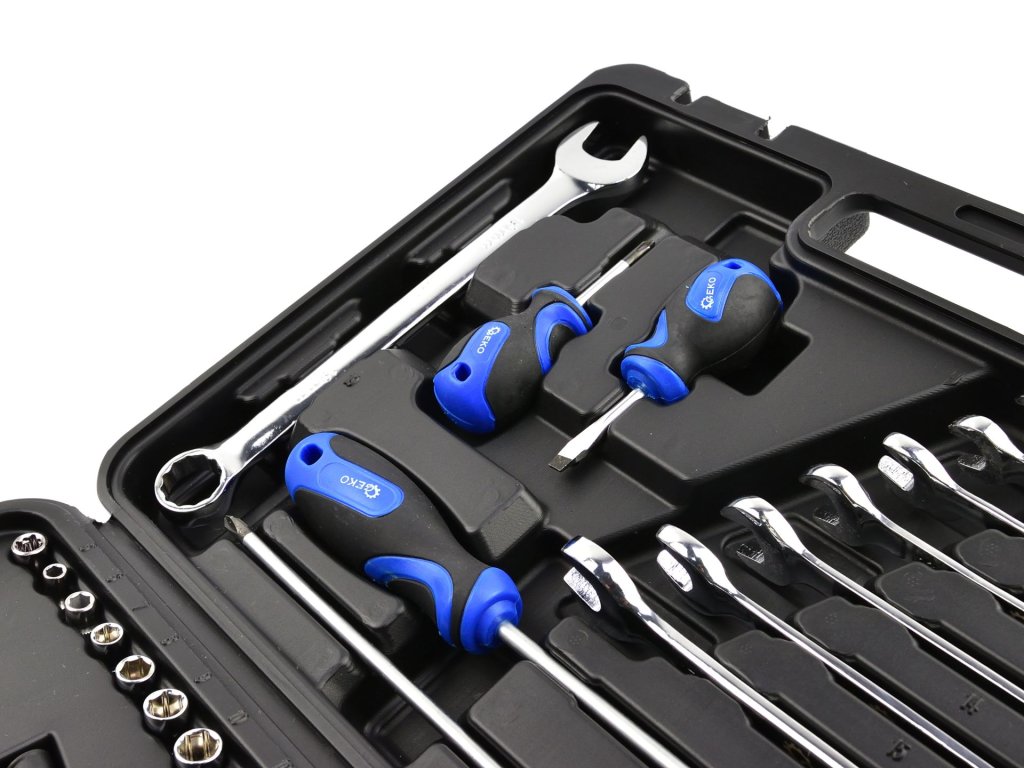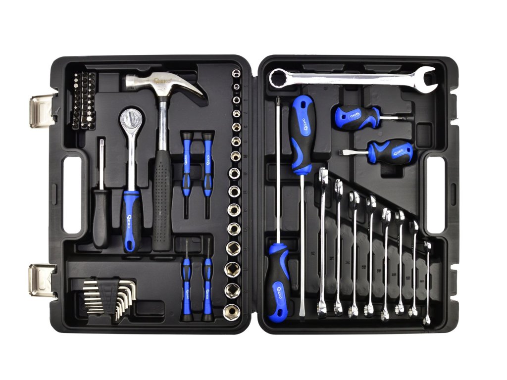 73dielna sada ručného náradia, univerzálne použitie, v plastovom kufri s kovovými prackami – GEKO G10108
