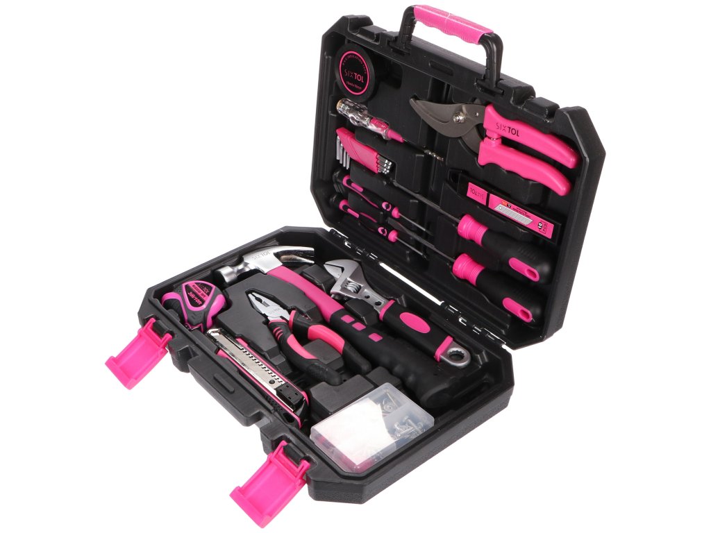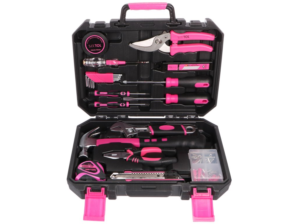 Sada ručného náradia v ružovo-čierne farebnej kombinácii, 88 dielov v plastovom kufríku - SIXTIOL HOME PINK 88