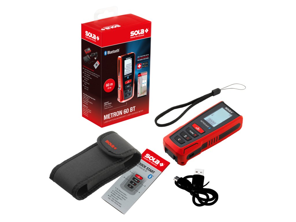 Laserový diaľkomer, dosah 60 m, presnosť +/- 1,5 mm, bluetooth - SOLA METRON 60 BT - 71027101.