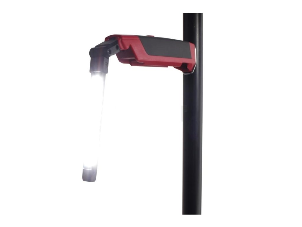 Svietidlo je vybavené vysúvacím háčikom a magnetom pre uchytenie na kovové časti. Ruky môžu pri práci zostať úplne voľné.