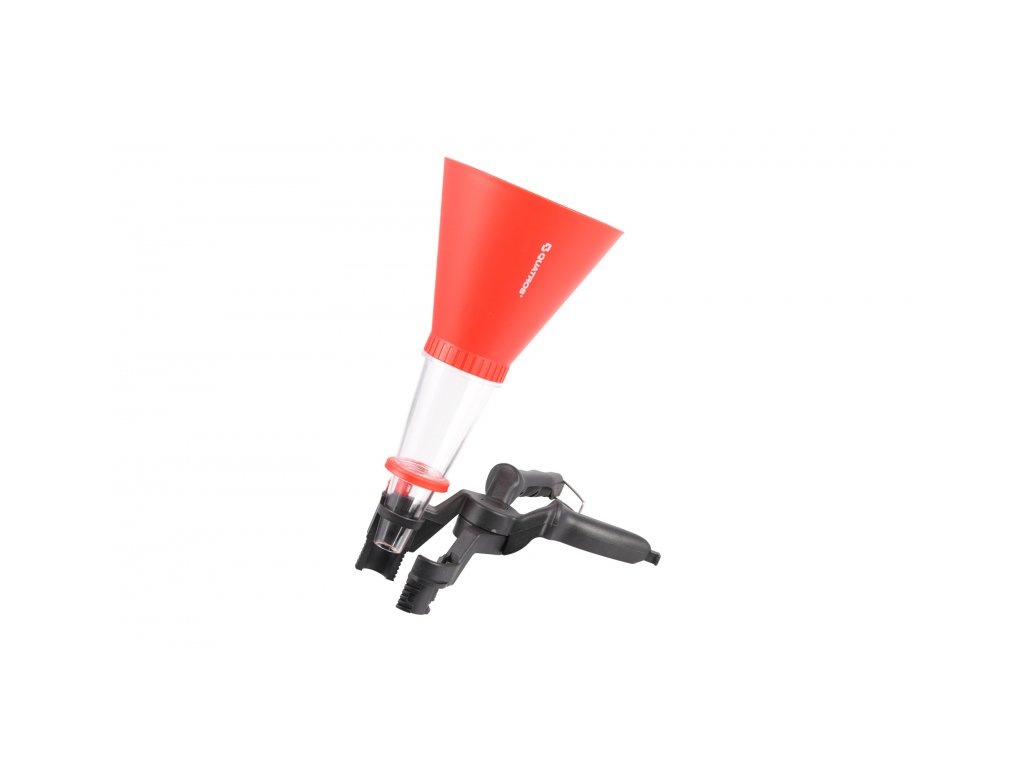 Lievik na jednoduchšie nalievanie oleja s automaticky nastaviteľnou svorkou a priehľadnou spodnou komorou na kontrolu prietoku oleja. Lievik sa dokonale prispôsobí rôznym priemerom plniacich otvorov a zabezpečí pevné spojenie.