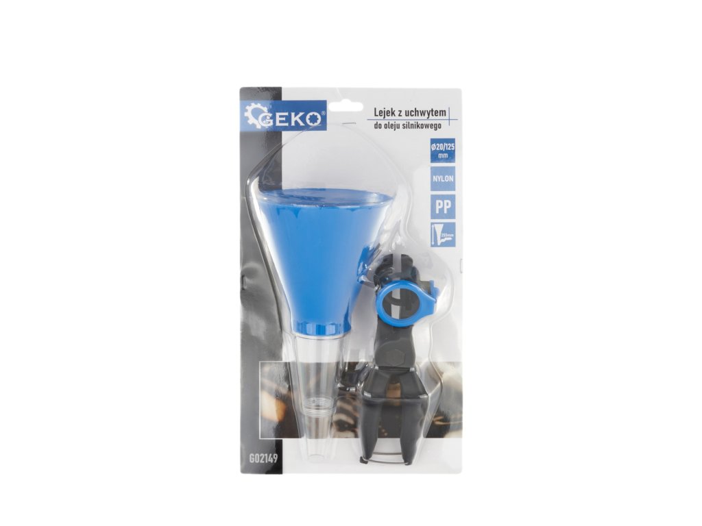 Nálevka na olej s rukoväťou, priemer 125 mm, nylon a PP, dĺžka rukoväte 19 cm - GEKO G02149.