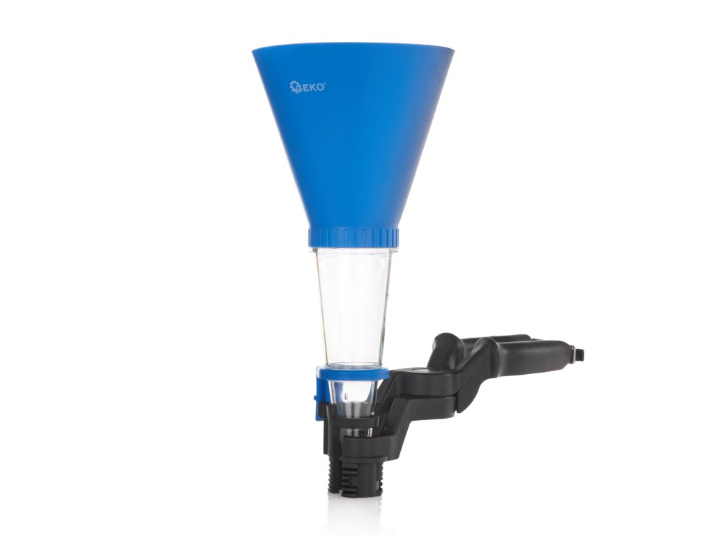 Rukoväť sa automaticky prispôsobí priemeru plniaceho otvoru, takže nie je potrebné držať lievik v ruke. Priehľadná spodná komora lievika umožňuje presnú kontrolu pri nalievaní oleja atď.