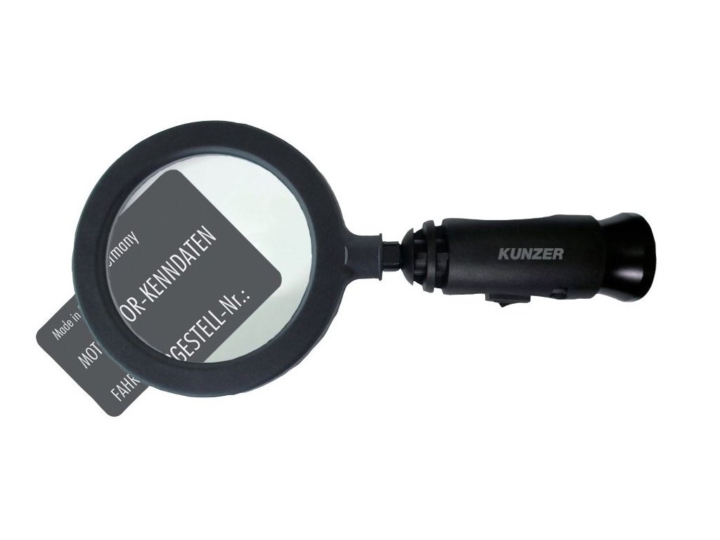 Praktická autoservisné a dielenská lupa pre pohodlné prečítanie zle čitateľného textu napr. Na typových či výrobných štítkoch, čísiel motora či karosérií vyrazených na temných miestach vozidla a pod. Veľké zorné pole priemerom 9 cm sa 14 osvetľovacími LED diódami umožňuje zhliadnutí textu vcelku bez nutnosti častého posúvania lupy .
