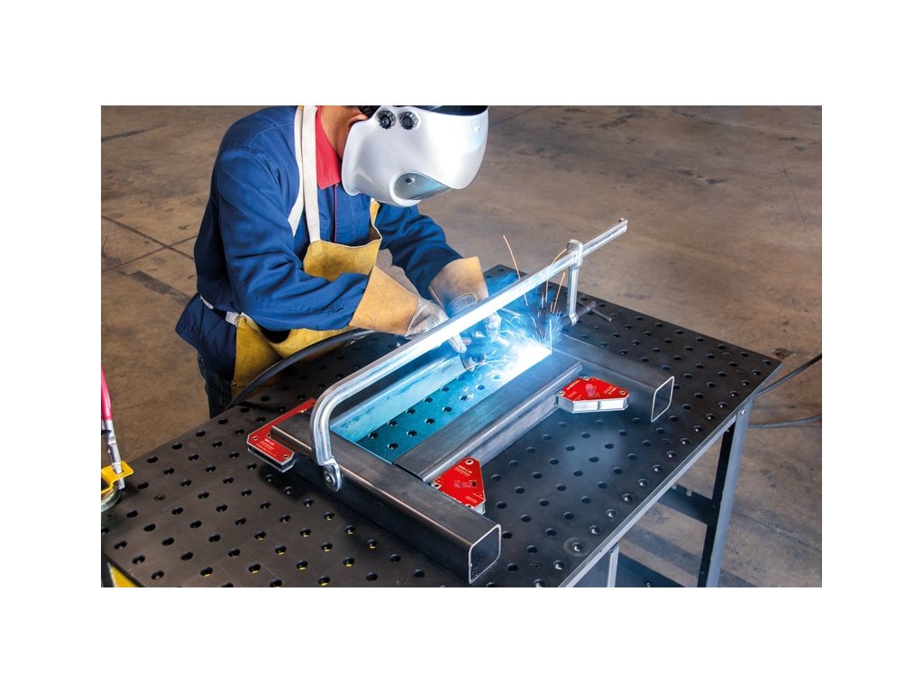 Uhlový magnet na fixáciu plechov, okrúhlych i hranatých obrobkov alebo rúrok pre uhly 45° a 90°.