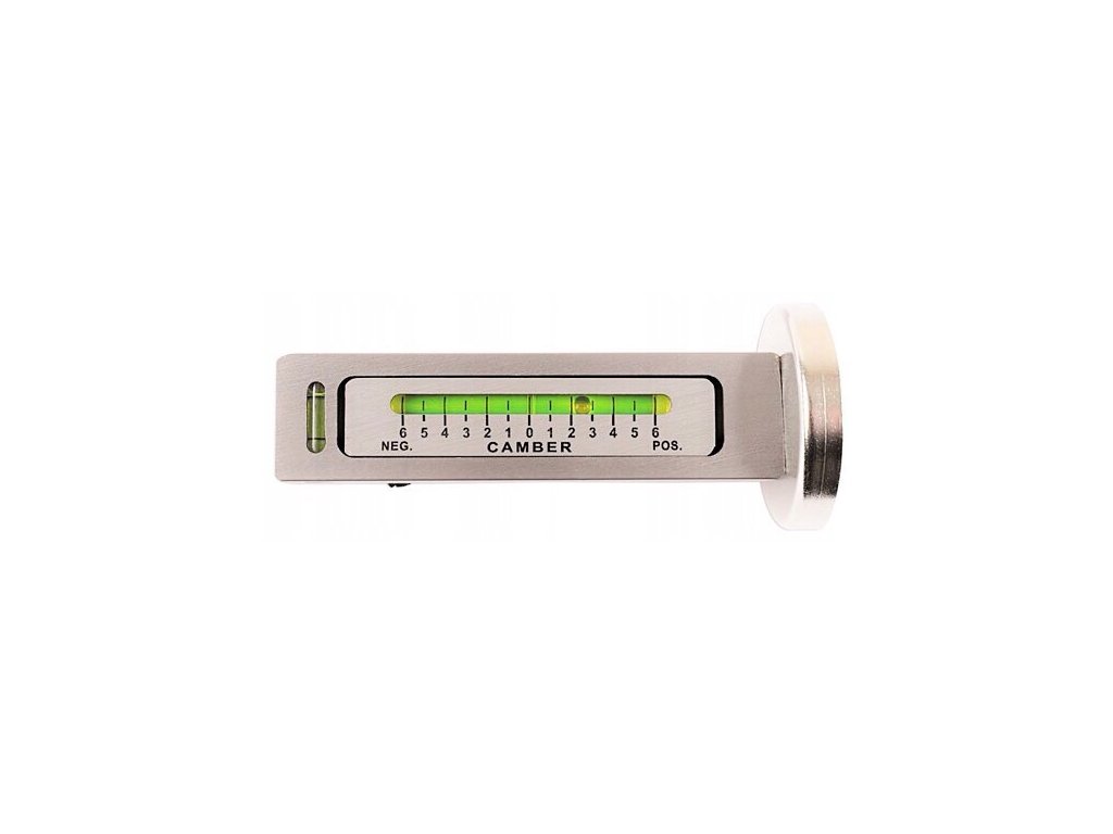 Použitie: umožňuje merať uhol sklonu kolesa a uhol predného chodu kĺbu riadenia. To je obzvlášť dôležité pri opravách spojených s výmenou tlmičov alebo iných súčastí ovplyvňujúcich geometriu kolies. Prípravok je priamo namontovaný na náboji alebo brzdových kotúčoch pomocou magnetického držiaka. Je vybavený skrutkou a stupnicou od -3 do +3 stupňov.