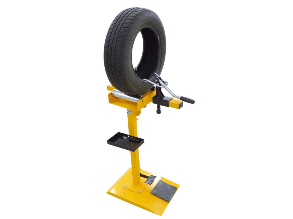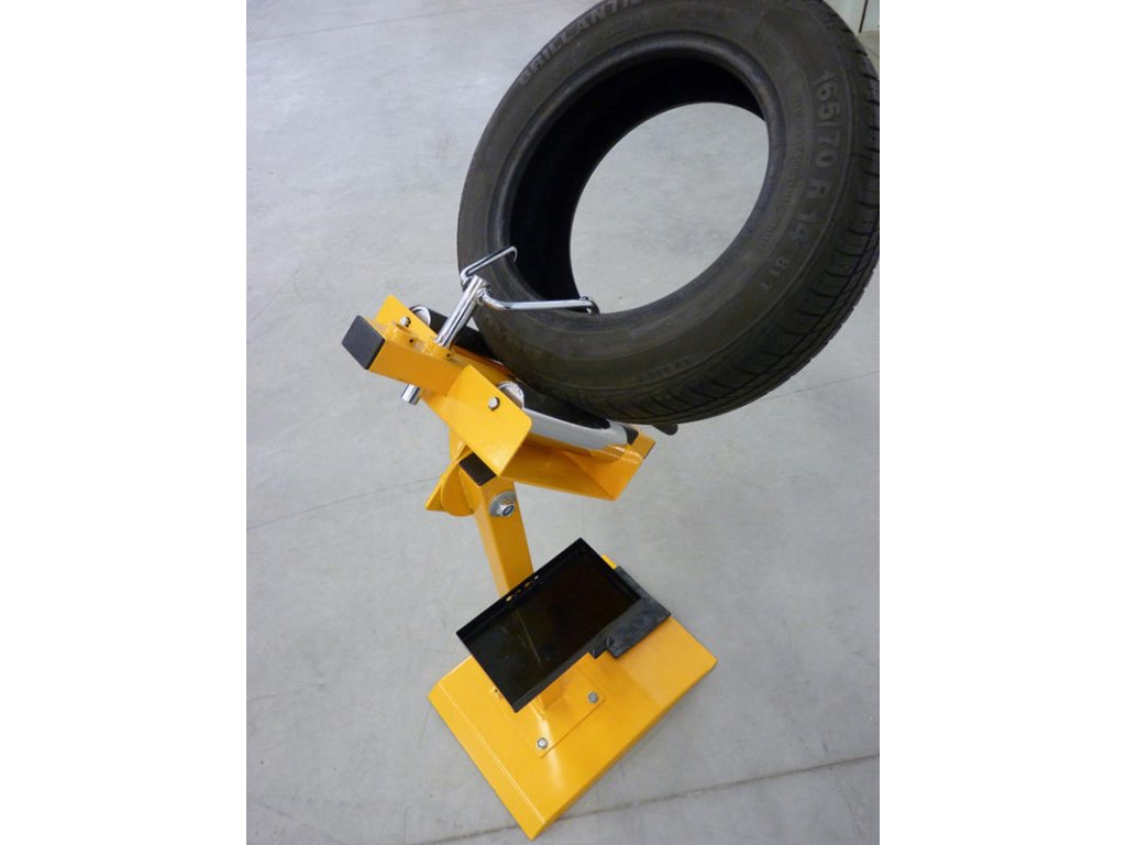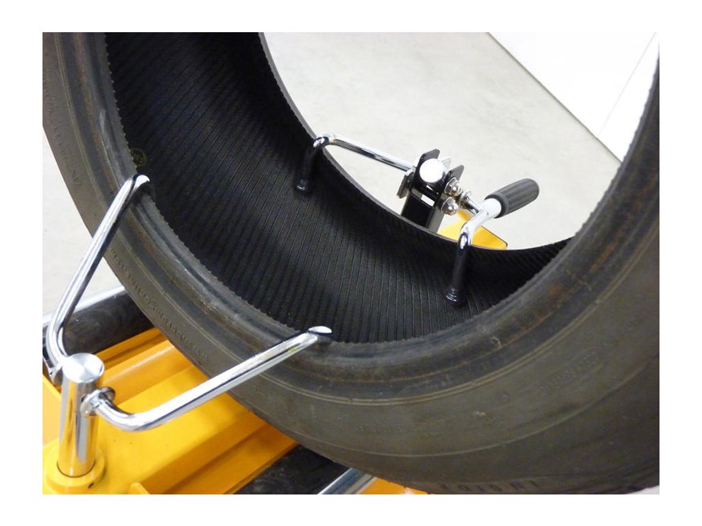 Pneumatika sa na rozťahovák upevní pomocou dvojice vidlíc, ktoré následne odtiahnu pätky od seba. Pracovnú dosku je možné navyše naklápať podľa potreby s niekoľkostupňovou aretáciou pomocou západky ovládané pedálom. Prístup dovnútra gumy je tak skutočne veľmi jednoduchý. Jej pootáčanie je jednoduché vďaka dvojici valčekov.