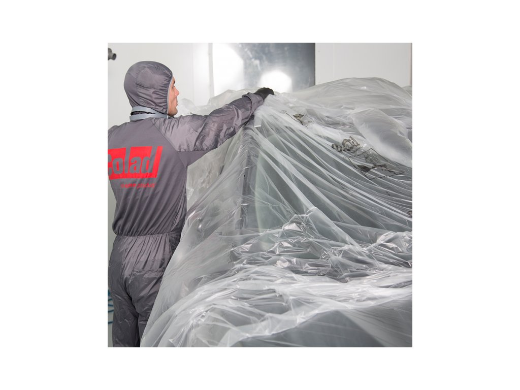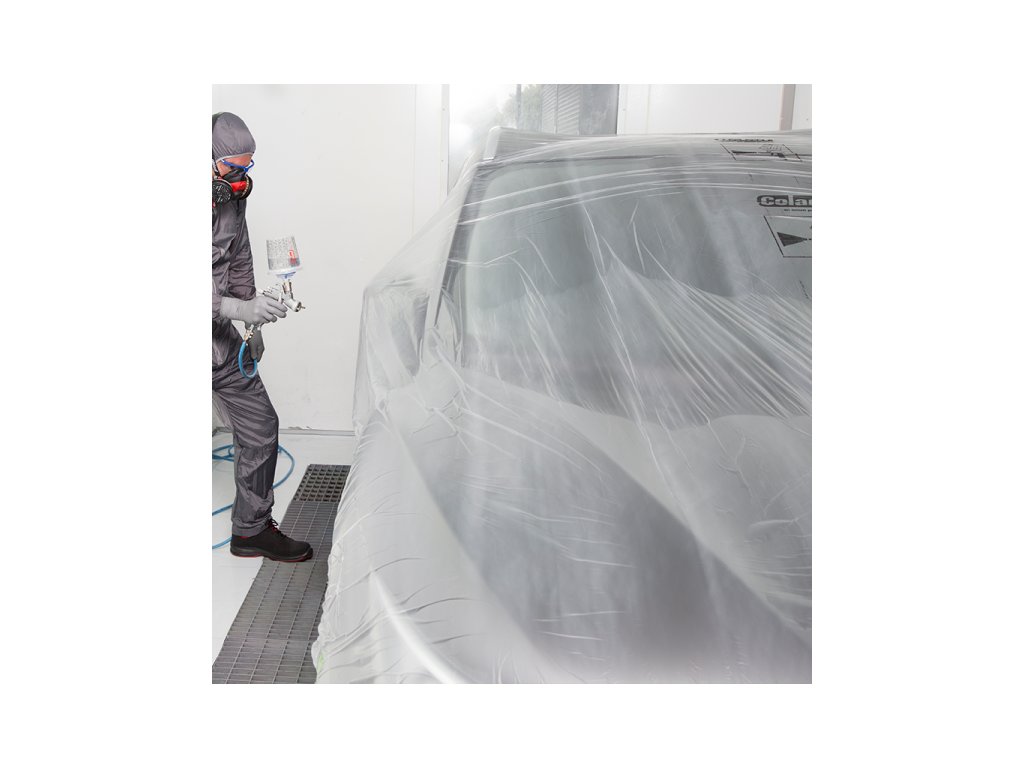 Priesvitná fólia pre prikrytie súčiastok v autolakovniach. Je vysoko statická (priľnavá) a pevná v ťahu.