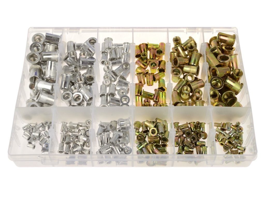 Maticové nity - nitovacie matice, M3 - M10, plochá hlava, oceľ a hliník, sada 300 kusov