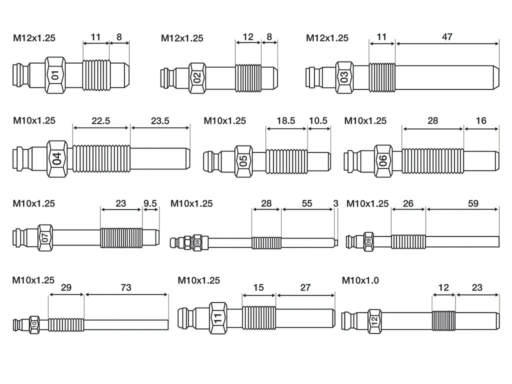 Obsah: Adaptéry do sviečkového závitu: Alfa, BMW, Chrysler, Daewoo, Fiat, Ford, Hyundai, Isuzu, Land Rover, Mazda, Mercedes, Mitsubishi, Nissan, Opel, PSA, Renault, Saab, Suzuki, -Toyota, VAG, Vauxhall a Volvo.