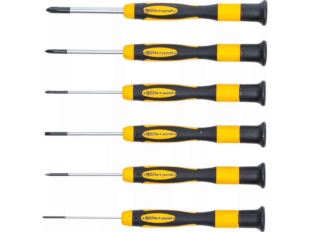 Sada plochých a krížových mikroskrutkovačov, pre jemnú mechaniku, dĺžka drieku 50 mm, 6 kusov v plastovom kufríku - BGS Do it yourself 35807