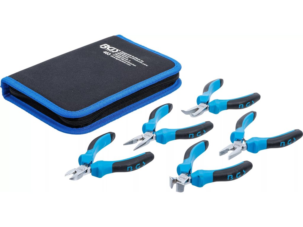 Súprava mini klieští rôznych druhov, s dvojitou pružinou, 5 dielov v látkovom puzdre na zips – BGS technic 463