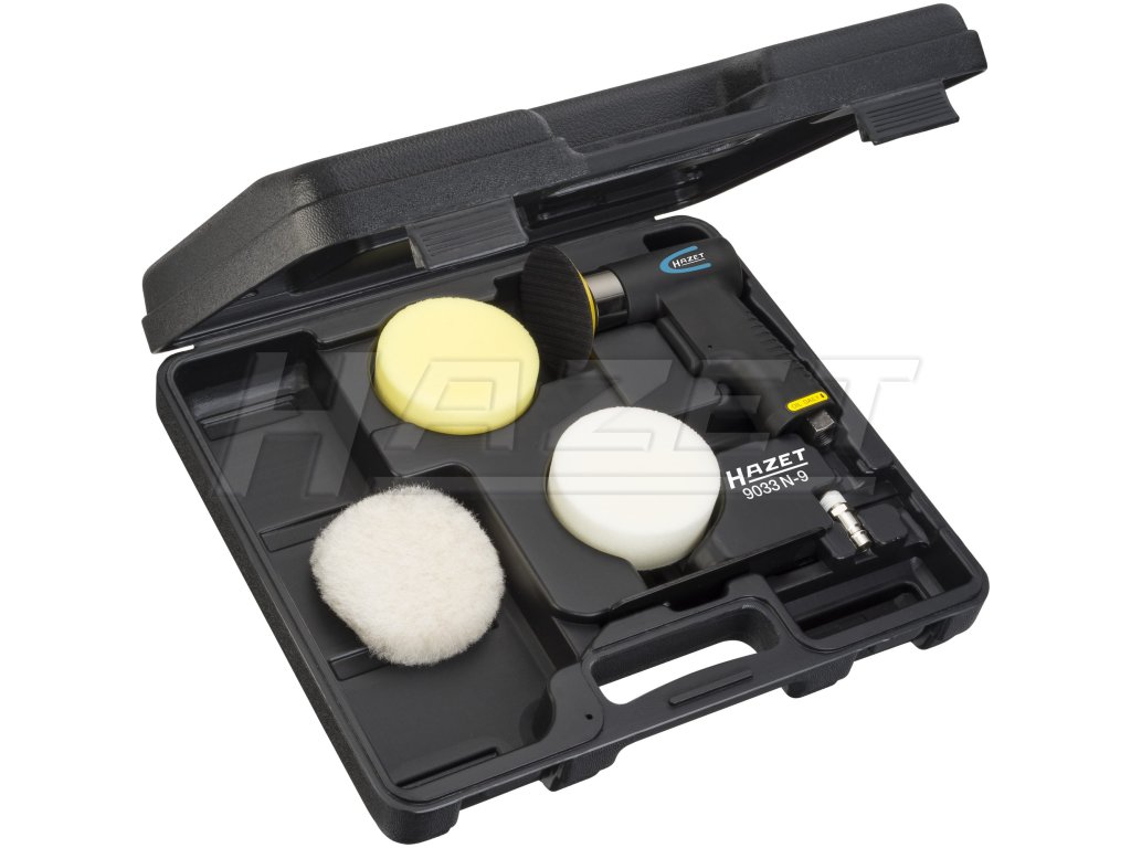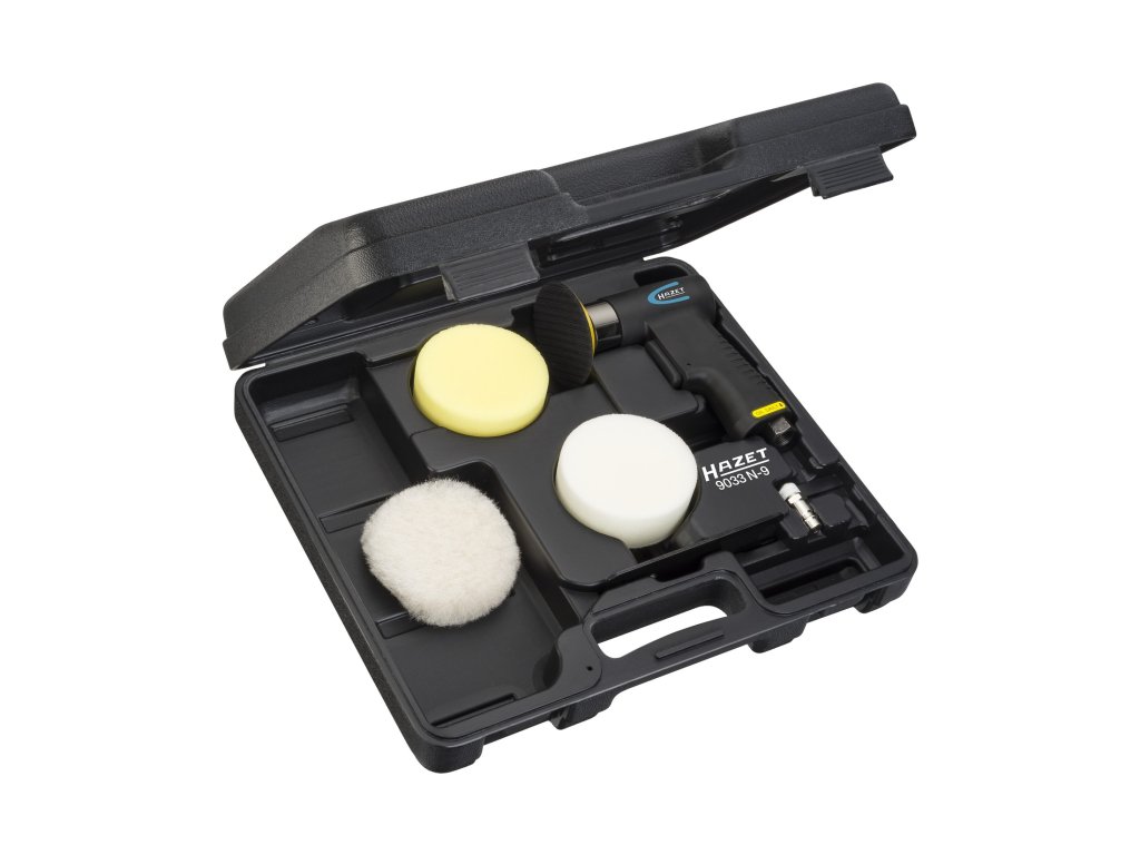 Mini sada na leštenie - pneumatická leštička a kotúče, 6 dielov - HAZET 9033N-9