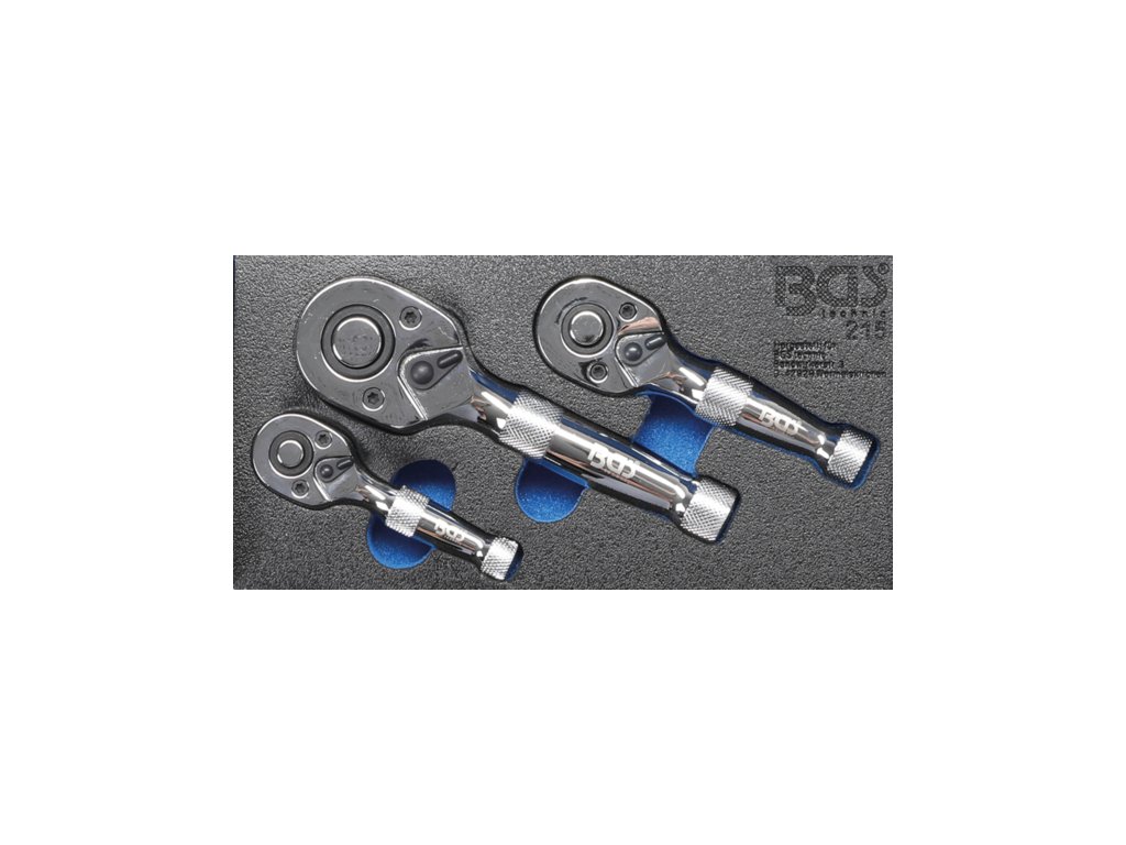Prepínacie mini račne 1/4", 3/8", 1/2", súprava 3 ks - BGS 215