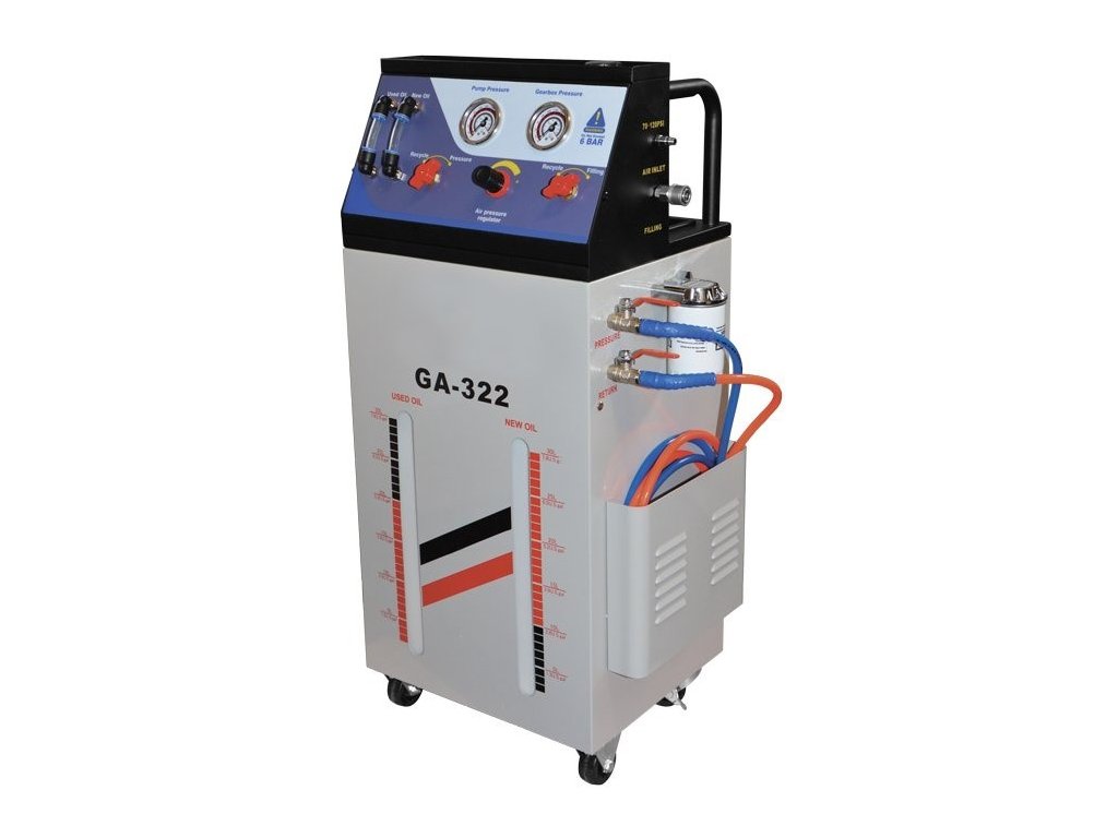 Pojazdný prístroj pre výmenu oleja v automatických prevodovkách umožňuje odobratie opotrebovaného oleja z automatických prevodoviek, ich preplach / čistenie a naplnenie novým olejom. Prístroj sa skladá z pojazdné skrine so zásobníkmi pre opotrebovaný aj nový olej, pneumatické časti a ovládacieho pultu v hornej časti. Súčasťou dodávky je plastový kufor s príslušenstvom, ktoré tvoria pripojovacie a prepojovacie adaptéry, tlakovej hadice a tesniace krúžky. Prístroj sa pri vykonávaní výmeny oleja napája jednak na kompresor a tiež spravidla na vývody alebo vedenie od automatickej prevodovky k chladiču oleja. K tomu slúžia špeciálne pripojovacie hadice. Ovládanie prístroja sa vykonáva manuálne, je však ľahké. Výmenu oleja podľa predpisu výrobcov možno vykonať veľmi kvalitne, bez námahy, pri zachovaní nevyhnutné čistoty.