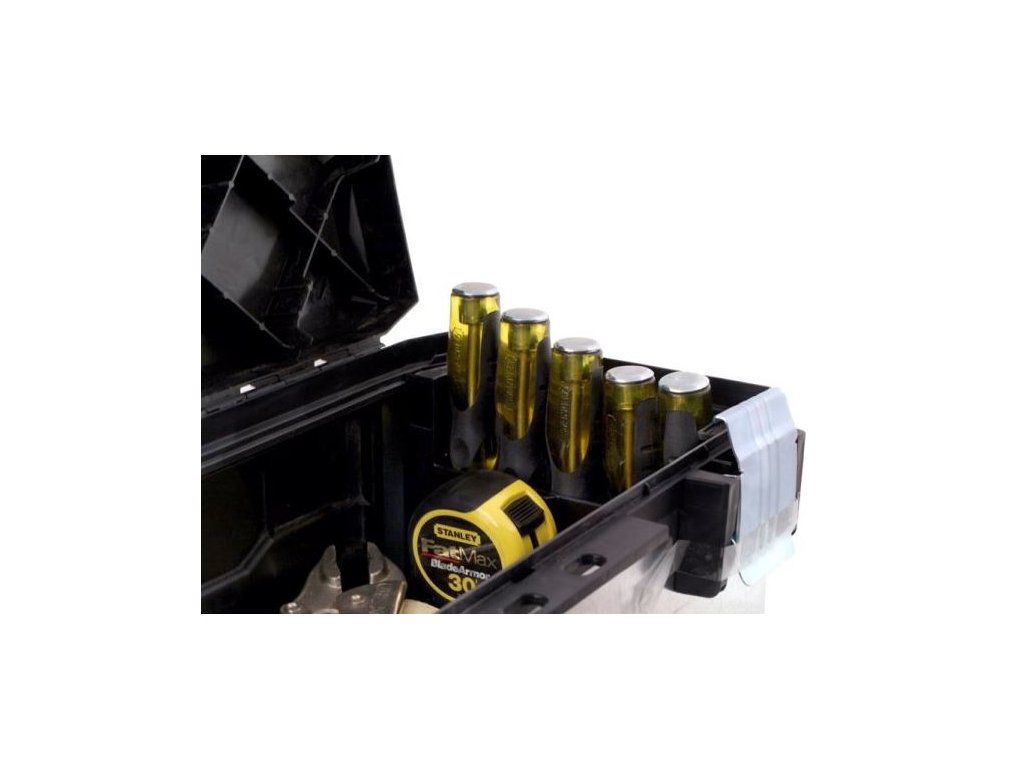 Vrchná a spodná priestory sú vhodné pre veľké kusy náradia (vŕtačky, brúsky a pod.), Horná má navyše vnútorné vyberateľnou priehradku na drobnosti. Šuplíky sú vďaka zvláštnemu systému rozkladanie plne vysunutelné. Na vrchnom viečku je špeciálny žliabok pre rezanie lát apod. Horná box je oddeliteľný a využiteľný ako kufrík.