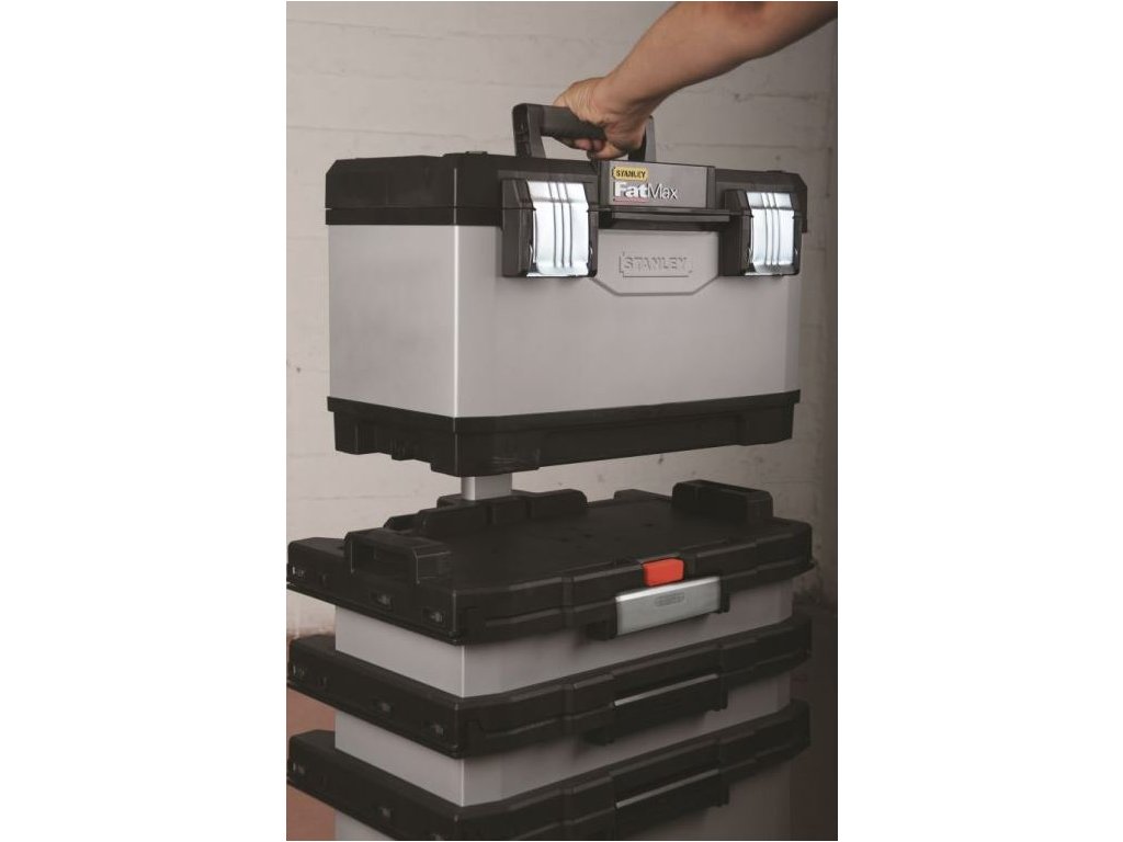 Pojazdný kufor - montážny box na náradie, 57 x 19 x 39 mm, Kovoplastový, s výsuvnou rukoväťou a nerezovými prackami - STANLEY FatMax 1-95-622