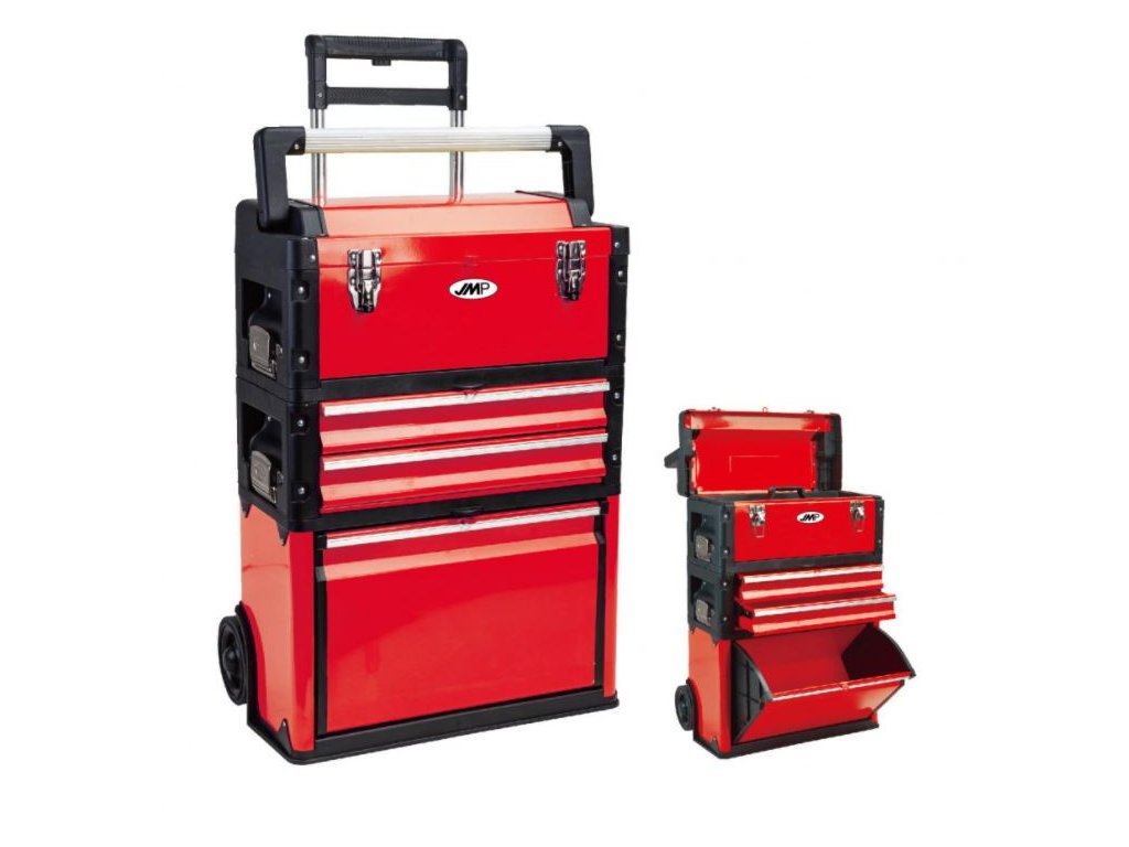 Kufor na náradie pojazdný, trojdielny, 520 x 320 x 720 mm, oceľ-plast