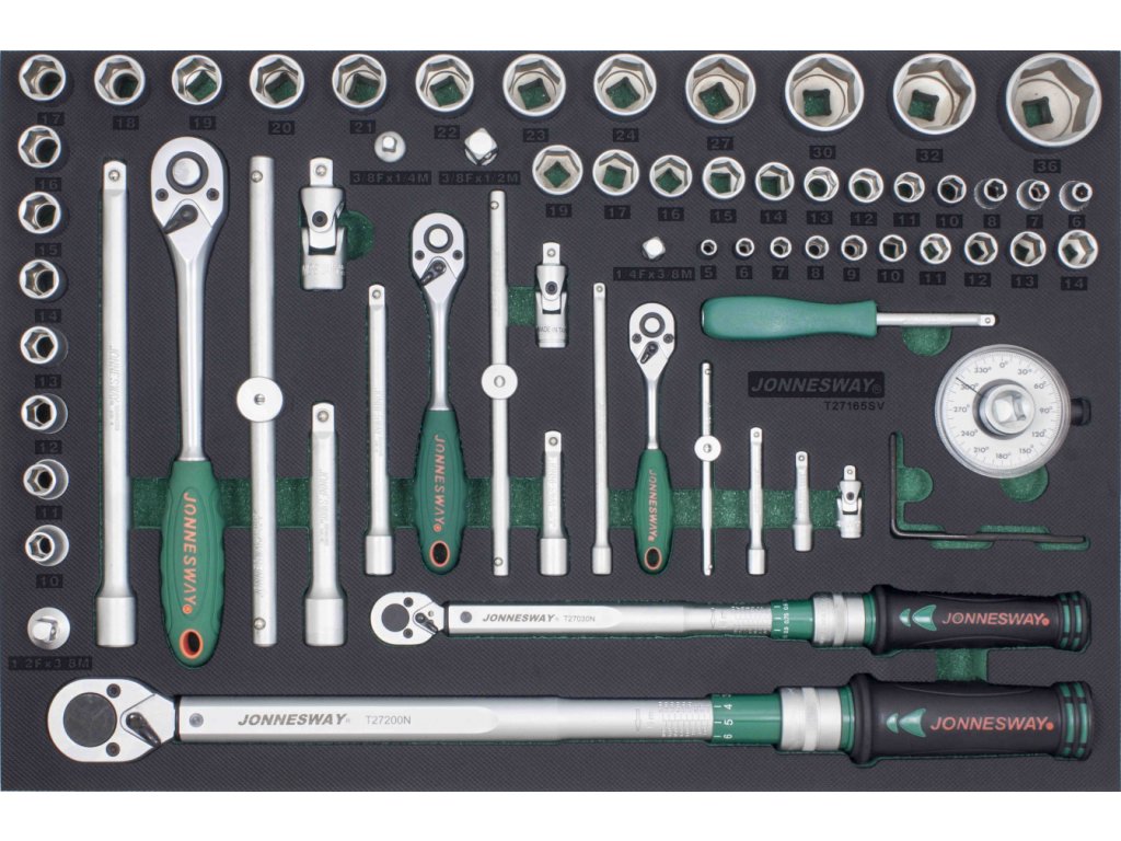 Modul - gola sada 1/4 ", 3/8" a 1/2 ", momentové kľúče 10-200 Nm, 65 ks - JONNESWAY T27165SV