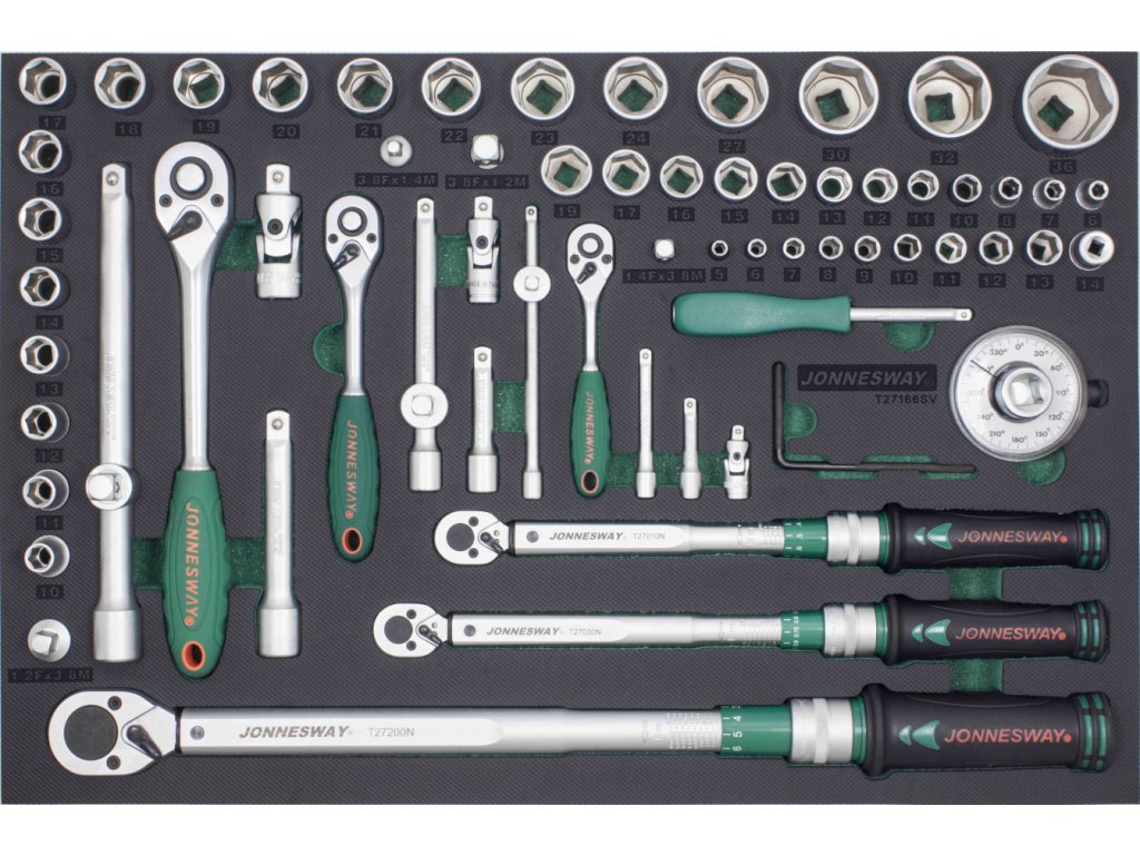 Modul - gola sada 1/4 ", 3/8" a 1/2 ", momentové kľúče 2-200 Nm, 66 ks - JONNESWAY T27166SV