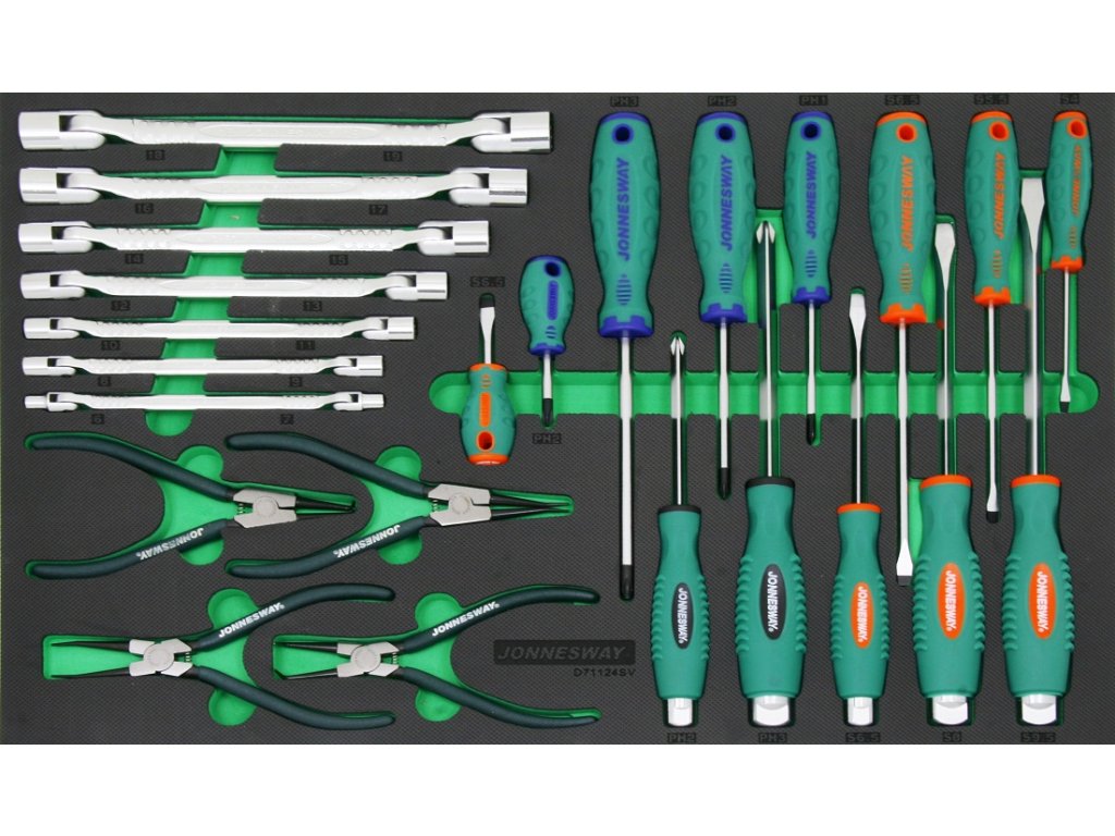 Modul - sada ručného náradia - skrutkovače, kliešte a kľúče, 24 ks - JONNESWAY D71124SV